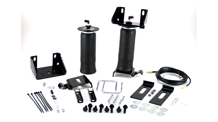 The AirLift SlamAIRâ„¢ helper spring kit is designed to mount between the leaf springs and the vehicle frame to provide up to 2,000 pounds of leveling capacity. These rubber air springs are air adjustable from 5 to 100 PSI to support variable loads and provide an adjustable spring rate. This kit is intended for use on lowered trucks to supplement the existing leaf springs and address reduced suspension travel.