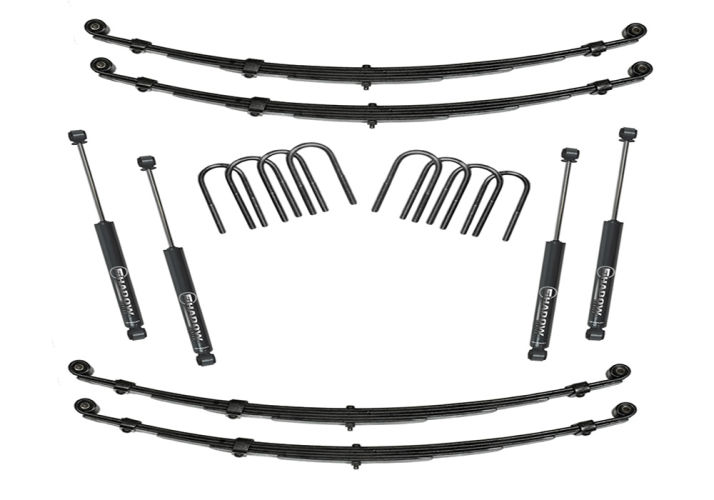- Front and rear leaf springs, shocks, u-bolt kits, and all specific hardware required