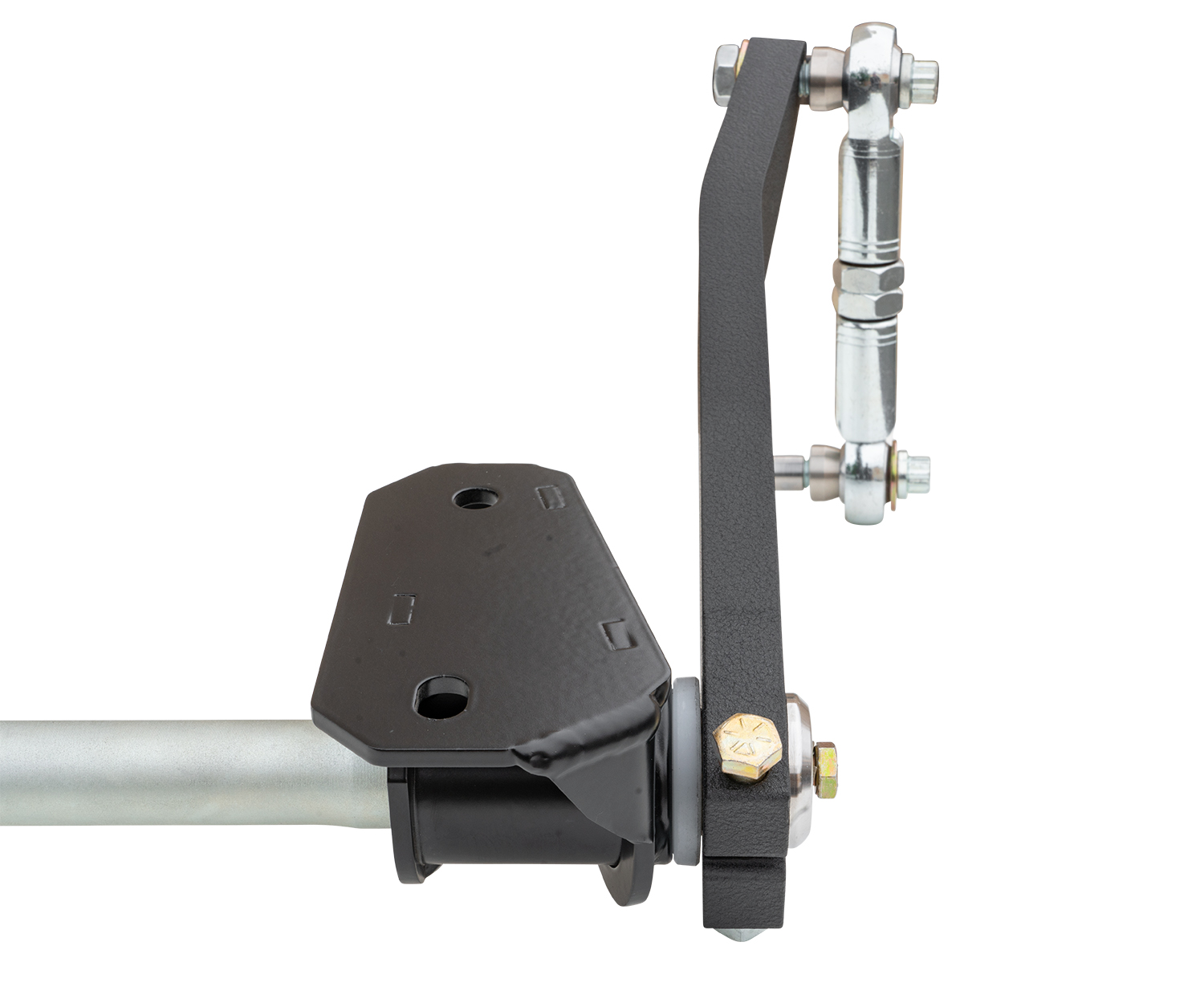 The arms are constructed of doubled and welded 3/8″ cold-rolled steel – 3/4″ thick at clamp area. The arms are locked to the bar by our in-house machined 17-4 stainless preload washers and Grade 8 pinch Bolts. The bar itself is a custom rate, heat treated torsion bar passing through fabricated brackets that house our extreme duty, service free bushings. Finishing off the assembly are Sway Bar End Links featuring legendary FK Bearing 5/8″ Heat-Treated, Chromoly Race Heims.