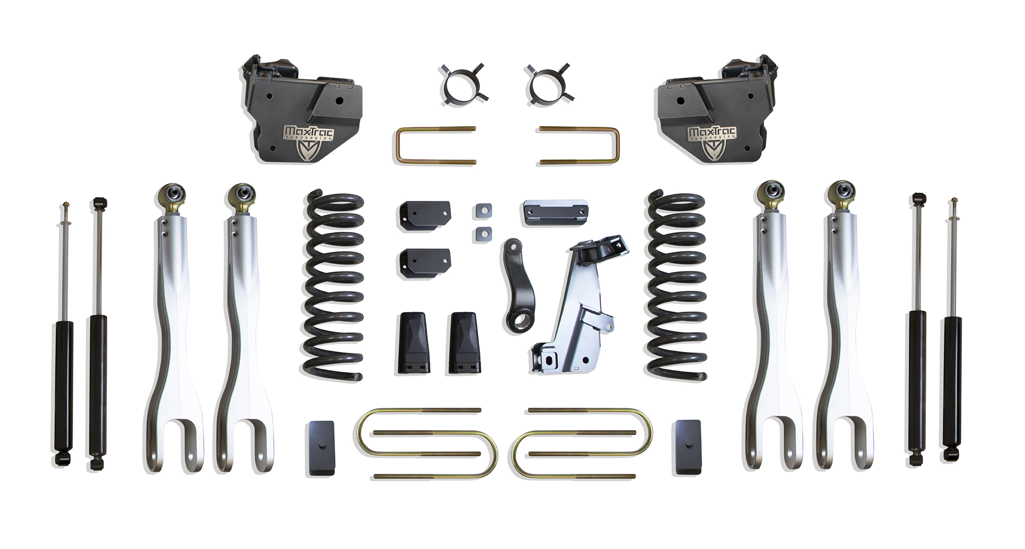 Durability is paramount, and the MaxTrac 4″ Lift Kit is constructed from high-quality steel with a grey powder coat finish to withstand the rigors of off-roading. It’s also versatile enough to fit dually models, enhancing your truck’s capability while maintaining the integrity of its design.