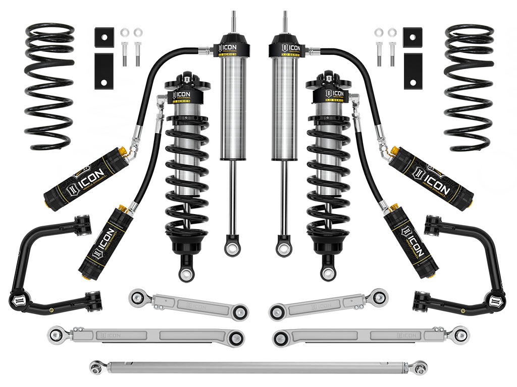 Summary: The ICON Stage 3 3.0 suspension system for the 2022–2025 Toyota Tundra is a high-performance coilover conversion designed for TRD models, providing 1.25–3.25 inches of front lift. This system upgrades the Stage 2 platform by adding triple-rate rear coil springs and an adjustable rear track bar for superior axle control. Featuring 3.0 Series CDCV coilovers and shocks, along with Billet Aluminum Upper Control Arms and a full Billet rear link suite, this system is engineered for maximum damping, articulation, and the fitment of 35 inches tires.