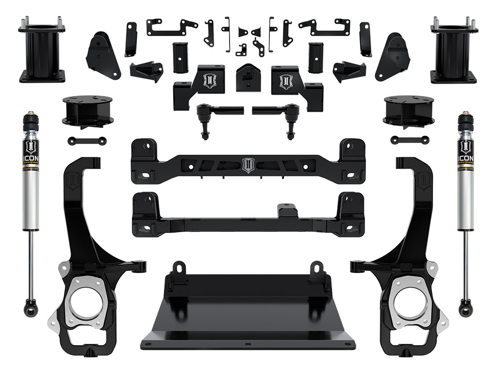Summary: The ICON Stage 1 Suspension System provides a comprehensive 6 inches lift solution for the 2022–2024 Toyota Tundra, engineered to accommodate 37 inches tires while maintaining factory track width. This system utilizes high-strength ductile iron steering knuckles and heavy-duty 1/4-inch steel crossmembers to deliver a 6 inches front lift with only 4 inches of crossmember drop, maximizing ground clearance. The Stage 1 configuration includes 2.0 Aluminum Series rear shocks to significantly improve damping performance and ride quality over stock components.