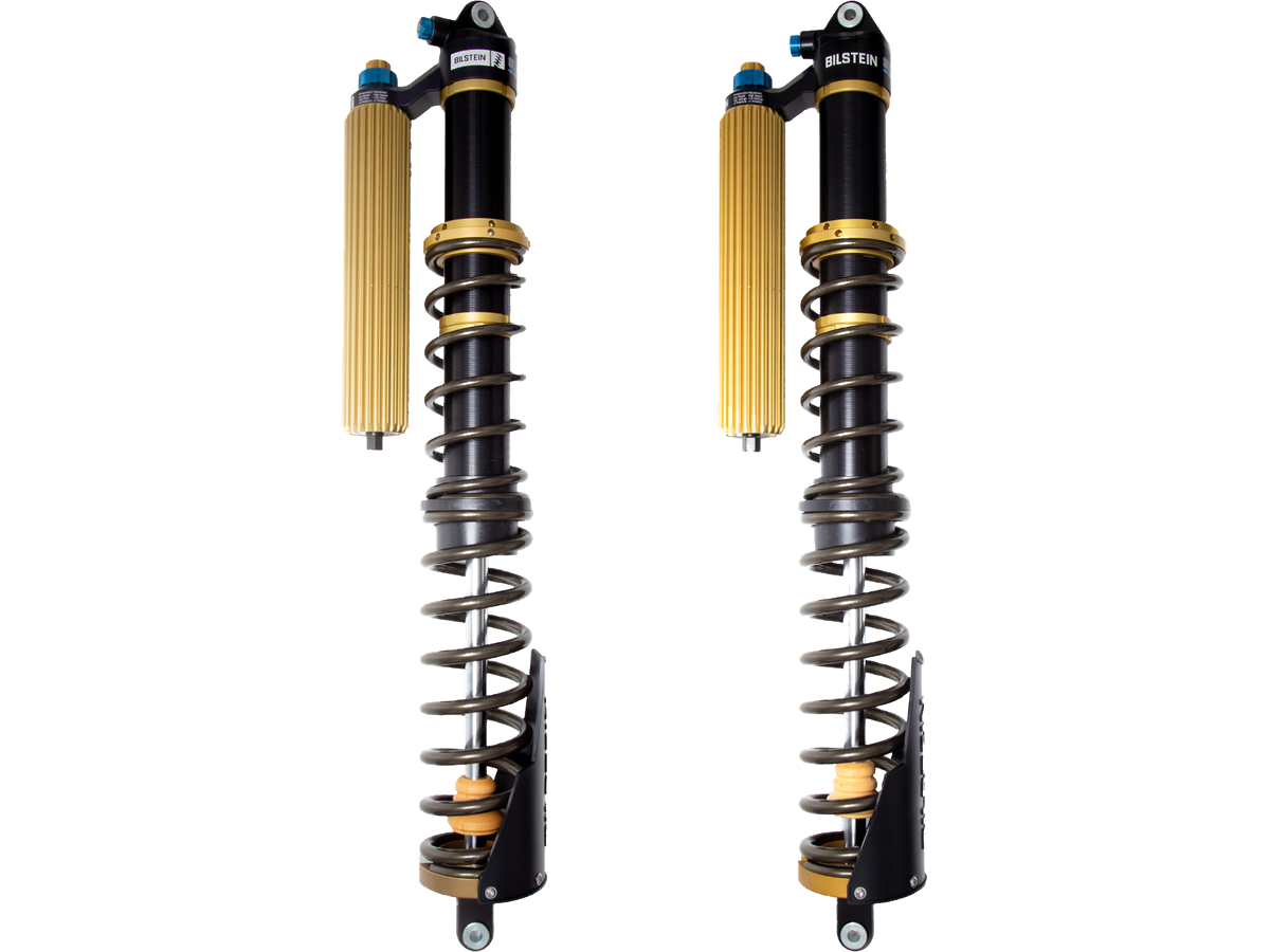 Bilstein Black Hawk Powersports coilovers are specifically engineered to vastly improve the performance of your UTV. These direct fit coilovers offer position sensitive damping and 4-way adjustability, all features that will take your UTV to the next level. Black Hawk Powersports feature Bilstein’s patented ZoneControl position sensitive technology that contains 5 independently tuned damping zones; 3 Compression and 2 Rebound. ZoneControl incorporates an internal Jounce Cut Off system (JCO) which is effectively a 2-Stage hydraulic bump stop. The JCO has a 10-position clicker that allows the rider to fine tune bottom out control. For Rebound, ZoneControl features a Rebound Cut Off (RCO) that acts to settle the vehicle at the final stage of suspension droop. The RCO will protect the damper, eliminating the need for a limit strap. Black Hawk Powersports offer 4 unique external adjustments; High/Low speed compression, rebound, and JCO. All easily accessible and ready for quick damping changes on the fly. Bilstein Black Hawk powersports are an all-aluminum design with gold finned reservoirs. All applications come with Dual Rate Coils and crossover nuts for easy ride height and spring preload adjustments. Black Hawk Powersports are completely serviceable and designed to withstand race conditions right out of the box. This extremely versatile coilover package will provide excellent comfort and unsurpassed bottom out control. Experience a unique “bottomless” ride with Bilstein’s new Black Hawk Powersports coilover packages.